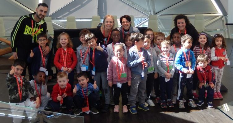 In copertina e qui sopra i bambini in visita alla sede centrale di CiviBank.