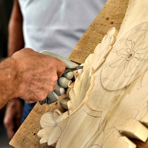 In copertina, un artigiano del legno all’opera a Sutrio, in Carnia.