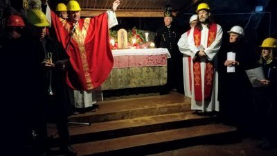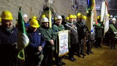 TARVISIO – Santa Barbara, patrona dei minatori, è stata onorata, come è tradizione, a Cave del Predil, la località dove per secoli i suoi abitanti sono stati legati, nel bene e nel male, alla secolare Miniera dove fino al 1991 venivano estratti i minerali di piombo e zinco. Affollato da circa 200 convenuti – di più non avrebbero potuto avere accesso -, il “camerone” nelle viscere della montagna, dedicato alla patrona, dove sull’altare dei minatori don Stefano, parroco di Tambre d’Alpago, ha concelebrato la Messa con il nuovo parroco di Tarvisio, don Alan Iacoponi, e con due sacertodi sloveni. Alla suggestiva cerimonia religiosa, accompagnata dal coro maschile “Sot le piargule” di Percoto, è seguita, all’esterno, al monumento al Minatore, un’ artistica opera in bronzo collocata all’ingresso storico, la deposizione di una corona d’alloro a ricordo dei lavoratori defunti.