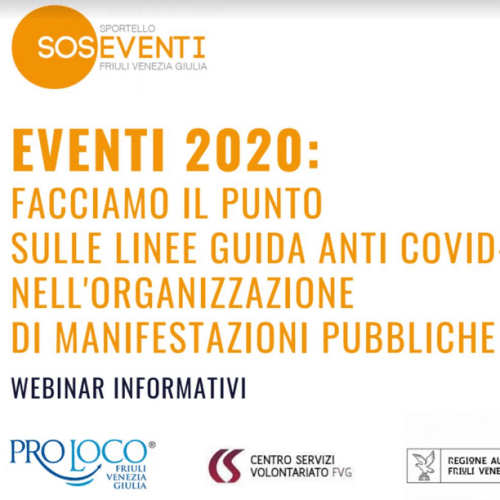 Dopo quello di ieri, i webinar sono stati programmati anche nelle giornate di domani, giovedì 25, e sabato 27 giugno e vedrà come relatori i tecnici perito industriale Luigi Folin e architetto Enrico Zamparutti, consulenti dello Sportello Sos Eventi Fvg con decennale esperienza negli aspetti legati alla sicurezza delle manifestazioni pubbliche, e l’avvocato Elisabetta Basso, legale e consigliere del Comitato regionale Pro Loco.