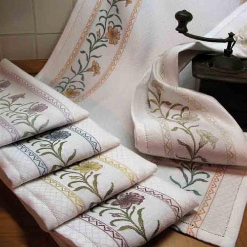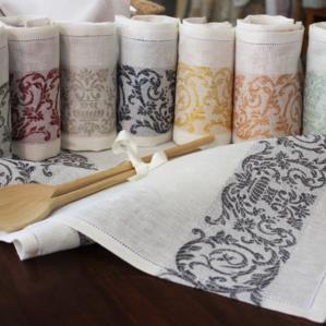 In copertina e qui sopra pregiati tessuti dell’azienda di Villa Santina.