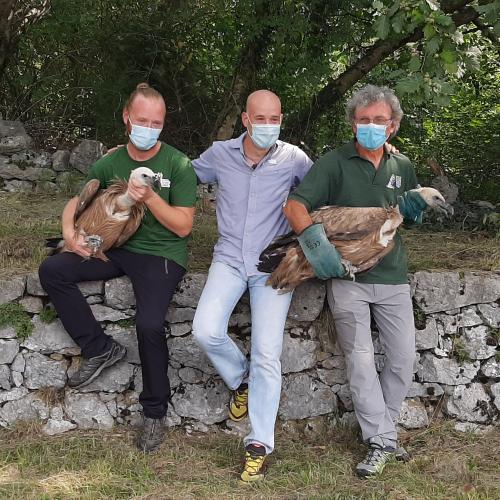 In copertina e qui sopra due immagini della liberazione dei rapaci a Cornino.