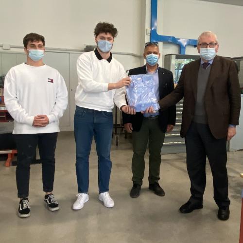 Una donazione di 50 camici da lavoro. Così Confartigianato-Imprese Udine e in particolare il consiglio di zona Basso Friuli hanno voluto ringraziare l’Istituto scolastico “Mattei” di Latisana per quanto fa in termini di formazione tecnica con particolare attenzione al settore della nautica da diporto. «E’ il nostro modo per dire grazie al dirigente scolastico e ai docenti tutti per il grande lavoro che stanno facendo con questi ragazzi e che dal 2006 ci vede collaborare come associazione donando materiali e attrezzature», ha detto il presidente di Confartigianato-Imprese Udine, Graziano Tilatti, consegnando i camici assieme al vicepresidente di zona, Giorgio Venudo. «Questo istituto rappresenta un’eccellenza – ha aggiunto il leader degli artigiani friulani – che vogliamo aiutare creando un efficace ponte tra il mondo della scuola e quello delle imprese. Il nostro augurio infatti è che da qui escano non solo tecnici preparati ad entrare nelle nostre imprese, a dar gambe al Pnrr, ma a metter su impresa».