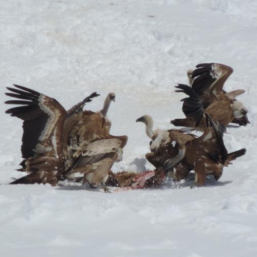 A fruire del carnaio, dalla primavera, sono invece gli “ospiti”, vale a dire i grifoni che cominciano ad arrivare dall’estero, Croazia in testa; recente anche il monitoraggio di esemplari giunti dalla Serbia e dalla Grecia. Complessivamente, l’attuale popolazione di avvoltoi in movimento fra il Friuli, la Slovenia e l’Austria si aggira su quota 200 esemplari nella stagione invernate e in circa 400 in quella estiva.