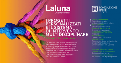 «Rimettere al centro la persona – ha spiegato Daniele Ferraresso, progettista educativo pedagogista clinico de Laluna – utilizzando un approccio globale con un’équipe multidisciplinare e definire un progetto individuale con l’obiettivo di includere e di valorizzare ciascuno secondo le proprie capacità e aspirazioni, questo il tema del nostro appuntamento formativo che si svolgerà in modalità digitale ed è aperto tutti: educatori, pedagogisti, operatori socio-sanitari, familiari di persone con disabilità. Il nostro intento è mettere a disposizione la nostra esperienza e mostrare l’efficacia dell’approccio multidisciplinare nei progetti educativi personalizzati». «Ringraziamo ancora una volta la Fondazione Friuli e il presidente Giuseppe Morandini – aggiunge Francesco Osquino, presidente de Laluna – per il sostegno grazie al quale possiamo lavorare ad una nuova frontiera del welfare».