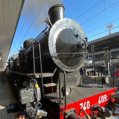 In copertina, la storica locomotiva del 1921 che ha trainato il convoglio rievocativo; qui sopra, immagini del suo arrivo alla stazione di Udine. (Foto Regione Fvg)