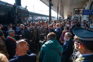 Guerini e le altre autorità – all’incontro erano presenti anche l’onorevole Debora Serracchiani e Ivano Strizzolo – si sono quindi trasferiti presso la stazione ferroviaria di Cervignano dove hanno preso posto sul treno storico che è partito alla volta di Gorizia, ripercorrendo il tragitto di un secolo fa. Alla stazione di Udine ad attendere il convoglio erano presenti sulle banchine centinaia di persone. Fra queste il sindaco Pietro Fontanini e decine di associazioni con bandiere e labari. Presenti anche l’assessore regionale Stefano Zannier e la medaglia d’oro Paola Del Din, presidente emerita della Federazione Italiana Volontari della Libertà, che è stata la prima e l’ultima persona, molto anziana, ringraziata dal ministro Guerini. Il treno è poi proseguito in direzione Venezia, fermandosi nelle altre stazioni friulane: Casarsa della Delizia, Pordenone, Fontanafredda e Sacile. Ad ogni tappa vi è stata una entusiastica partecipazione di autorità e popolazione.