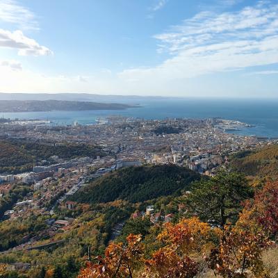 In copertina e all’interno la città di Trieste dal ciglione carsico e l’altopiano nei colori dell’autunno.
