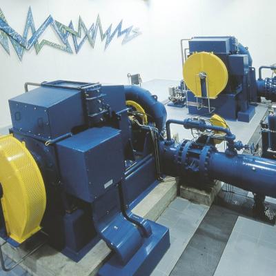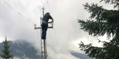 In copertina e qui sopra turbine e linee elettriche della Secab di Paluzza.