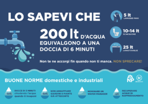 IL VADEMECUM – Una infografica chiara, con alcuni consigli pratici, è al centro del progetto comunicativo che il NIP sta inviando in questi giorni a tutte le aziende insediate. «Per non trovarci in situazioni ancora più critiche nel prossimo futuro – ha concluso il direttore Maisto – siamo chiamati a fare la nostra parte già da ora: con questi semplici consigli possiamo ridurre gli sprechi a vantaggio di tutti, visto che i bacini da cui attingiamo l’acqua sono in comune con altre realtà pubbliche che servono a loro volta aree urbane e reti di irrigazione. Confidiamo possa essere uno strumento utile per i nostri insediati, per sensibilizzare sia le aziende che i dipendenti delle stesse. Si tratta anche di un corretto approccio culturale alla tematica: per troppi anni abbiamo considerato disponibile in quantità e qualità un bene prezioso come l’acqua. Purtroppo non è e non sarà più così, dobbiamo imparare tutti a non sprecarla». Nel vademecum sia consigli per le aziende (dalla nomina di un water manager alla riduzione dei lavaggi di superfici che non necessitano di pulizie obbligatorie, fino al recupero delle acque di raffreddamento) che per i lavoratori i quali, come auspica il Nip, potranno applicarli anche nel loro ambito famigliare (dalle docce “intelligenti” con lunghezza massima di 3 minuti all’installazione del frangigetto nei rubinetti per ridurre i consumi idrici del 50%, fino alla sospensione del lavaggio automobili).
