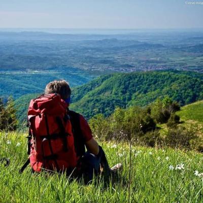 In copertina, un escursionista nel territorio delle Valli del Torre e del Natisone.