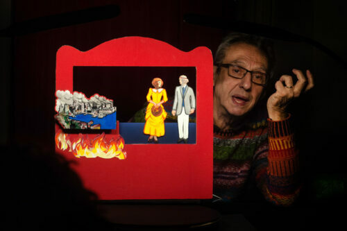Si tratta di una proposta di sicuro impatto, come spiegano, infatti, dal sodalizio di cui è direttore artistico Roberto Piaggio: si tratta di un teatro adatto a ragazzi e adulti, dove artista e spettatori, l’uno di fronte agli altri, sono separati soltanto da un tavolino che funge da palcoscenico. Si crea così una dimensione raccolta che permette al pubblico di entrare nella storia e di viverla assieme ai suoi protagonisti. Da ricordare, poi, che Claudio Montagna è considerato uno dei padri nobili dell’Animazione teatrale e dell’uso del linguaggio teatrale in contesti sociali, è un finissimo drammaturgo e narratore e porta in scena lavori di grande intensità seduttiva, unendo il fascino della parola a figurazioni semplici ma evocative.