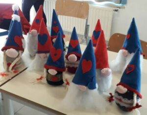 Le classi coinvolte si sono trasformate in piccoli laboratori sartoriali dove gli alunni hanno potuto sperimentare l’utilizzo di ago e filo. Nei primi laboratori portati a termine, sono stati realizzati dagli alunni degli gnomi natalizi, utilizzando oggetti e tessuti altrimenti destinati ad essere buttati via.
