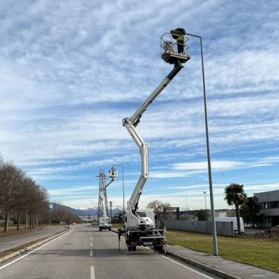 In copertina, la sostituzione delle lampade nella zona industriale di Maniago.