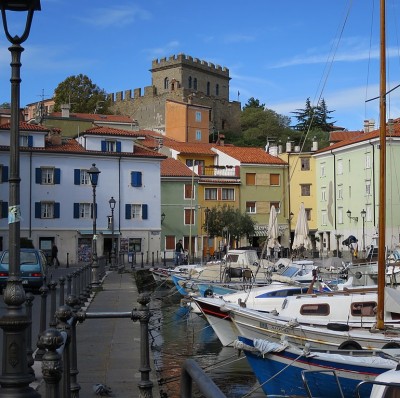 In copertina, il centro storico di Muggia con il caratteristico porticciolo di barche.