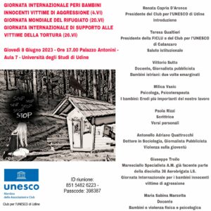 Riceviamo e volentieri pubblichiamo questa riflessione di Maria Sabina Marzotta, presidente del Caffè Letterario Udinese, in occasione della Giornata internazionale per i bambini innocenti vittime di aggressione che ricorre proprio oggi 8 giugno.