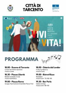 (g.l.) “Vivi la vita” è il titolo dato alla invitante manifestazione in programma oggi a Tarcento, nell’ambito della Festa della Musica. Ben sei le proposte messe nel ricco programma, che si articolerà tra la musica corale, bandistica e della fisarmonica per continuare con la musica funky e i ritmi che hanno caratterizzato gli anni 70-80-90 del secolo scorso. Si comincerà alle 18, in Duomo, con il concerto della Corale San Pietro Apostolo; alle 18.30, in piazza Libertà, ci sarà invece la Banda musicale di Coia, la cui esibizione sarà seguita, alle 19, in piazza Roma, da quella del Gruppo fisarmonicisti Tarcento Ensemble Flocco Fiori, con la direzione del maestro Massimo Pividori. Quindi altri tre appuntamenti in noti locali della cittadina: alle 18 all’Osteria dal Lendar Funky by Step, con appunto musica funky; alle 19 al Bistrot Rizzo i Nostalgici con musica degli anni 70-80-90 del secolo scors; infine alle 19.30 al bar Perla Sabina Grimaz ancora con musica degli anni 80-90.