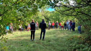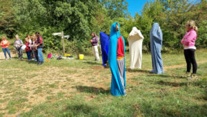 In copertina, escursionisti sul Carso e qui sopra scene di teatro nel bosco.