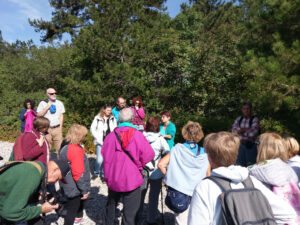 In copertina, un gruppo di partecipanti durante un’escursione mentre ascolta le illustrazioni di Maurizio Bekar; all’interno, il Carso che si veste con i colori d’autunno.