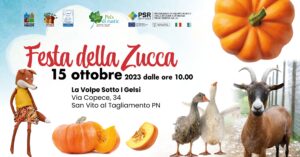 Immersi nel verde del Casale La Volpe sotto i Gelsi – tra animali da cortile e bancarelle di micro-artigianato, un labirinto nel campo di sorgo e con la possibilità di ascoltare dal vivo il farmer Il Rapace di Beano, volto famoso sui social per le sue uova arcobaleno -, torna domenica 15 ottobre la “Festa della Zucca” alla fattoria sociale e didattica de Il Piccolo Principe, che ha sede in località Comunali a San Vito al Tagliamento (in via Copece). Dal mattino fino al tramonto, si susseguiranno laboratori per bambini, musica e buon cibo, tutto in tema autunnale. I festeggiamenti sono organizzati dalla cooperativa Il Piccolo Principe di Casarsa con il sostegno del Progetto finanziato dal Psr Paîs di Rustic Amour.