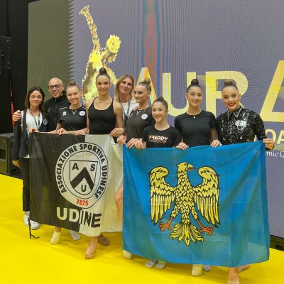 Sul fronte della categoria junior c’è un’altra friulana sul gradino più alto del podio: Isabel Rocco (incoronata principessa dell’Aura Cup 2023) che si è guadagnata l’oro nell’all-around con 108.517. Nelle gare di specialità, invece, ha vinto il bronzo al cerchio, l’argento alla palla e l’oro al nastro.