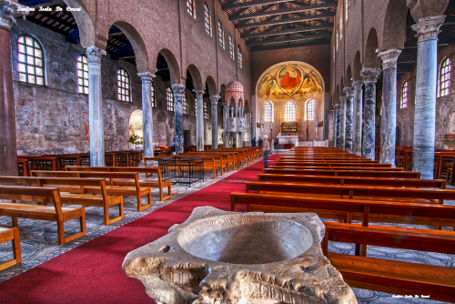 La ricorrenza della Dedicazione cadeva, per l’esattezza, venerdì 3 novembre, ma trattandosi di giorno feriale a ridosso della festività di Tutti i Santi e della commemorazione dei Defunti, viene celebrata proprio oggi, appunto con la dovuta solennità. Già Cattedrale dell’antico Patriarcato di Grado, la Basilica paleocristiana in stilo romanico risale al sesto secolo dopo Cristo essendo stata consacrata nel 580. Come detto, è dedicata alla giovane martire Eufemia di Calcedonia, località dell’odierna Turchia. La Basilica è il massimo edificio religioso dell’Isola e nel Campo dei Patriarchi “convive” con l’altrettanto antica Chiesa di Santa Maria delle Grazie, altro bellissimo esempio dell’arte paleocristiana e romanica. Entrambi sono i gioielli storici di Grado maggiormente visitati, ma i riti vengono praticamente tutti celebrati proprio in Sant’Eufemia, la cui ottima acustica consente anche l’organizzazione di stupendi concerti di musica classica e sacra. L’ultimo dei quali ha offerto in settembre una splendida esecuzione del monumentale “Requiem” di Mozart dedicata a monsignor Silvano Fain, nel venticinquesimo anniversario della scomparsa.