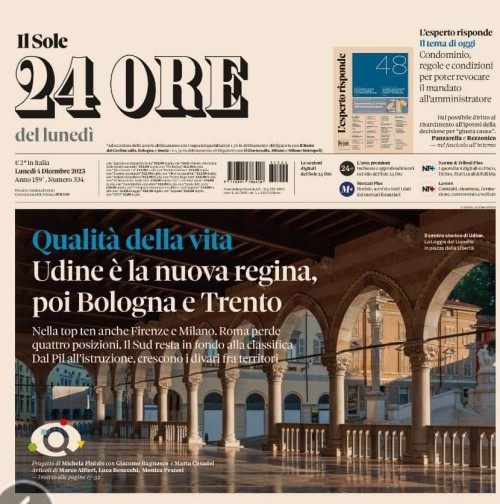 In copertina, la prima pagina del quotidiano economico Sole 24 Ore dedicata a Udine.