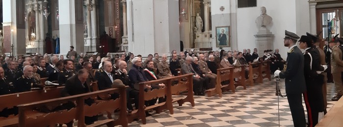 UDINE – «San Giuseppe ci aiuti a essere operatori di pace per spegnere la violenza che insanguina il mondo». Può essere sintetizzato così il messaggio forte e chiaro che è salito ieri mattina, festività che ricordava la memoria dello Sposo della Madonna e Padre putativo di Gesù, dalla Cattedrale di Santa Maria Annunziata, dove l’arcivescovo emerito di Udine e oggi amministratore apostolico, monsignor Andrea Bruno Mazzocato, ha celebrato una Messa solenne dedicata, nell’imminenza del precetto pasquale, alle Forze Armate e dell’Ordine, vale a dire Carabinieri e Polizia di Stato e Locale. Uno degli ultimi riti per il presule prima del suo ritiro a Montebelluna, a conclusione del mandato in Friuli che il 5 maggio passerà nelle mani del successore, monsignor Riccardo Lamba, proveniente dal Vicariato di Roma.