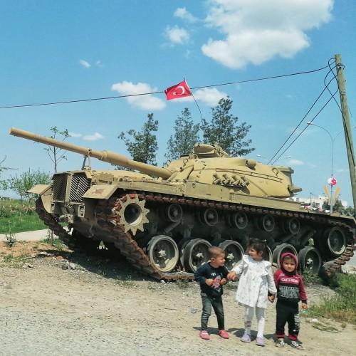 «Sto compiendo un pellegrinaggio – ci ha detto in un messaggio inviato ieri assieme ad alcune belle e significative immagini – per scoprire i fondamenti della Fede e ringraziare i Profeti per il loro esempio e chiedere Unità dei popoli. Mi trovo – ha aggiunto – a soli dieci chilometri dal confine anatolico con la Siria e ho appena scattato questa foto nella zona di Harran che mi sembra pregna di significato». Ritrae, infatti, tre bambini che giocano davanti a un carrarmato, segno dell’atmosfera surriscaldata che c’è in quel quadrante del Pianeta.