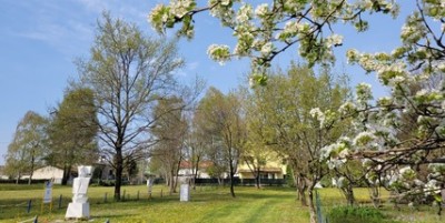 In copertina, la Chiesa di Vergnacco e qui sopra il Parco delle sculture.