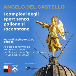 Sarà una serata all’insegna dello sport friulano, quella in programma oggi, a partire dalle 18, al PalaPrexta, sede dell’Associazione Sportiva Udinese. “Angelo del castello”, il format di UdineseLife.it, dopo il successo della sua prima edizione, si ripropone al grande pubblico in una veste nuova che vedrà salire sul palco “I campioni degli sport senza pallone”. L’evento – sponsorizzato da Romagna Coppe – sarà aperto al pubblico, a ingresso libero, ma con iscrizione obbligatoria attraverso la piattaforma EventBrite (entro le ore 12), fino a esaurimento dei posti disponibili.