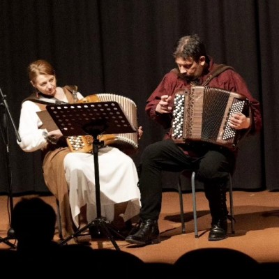 Protagonisti della serata saranno gli AccorDòs & Alessandro Piputto, con il loro spettacolo Quadri musicali dal Mondo. Il duo, composto da Alessio de Franzoni alla fisarmonica e clarinetto, e Sara Rigo alla fisarmonica, voce e flauto, sarà accompagnato dalle percussioni di Alessandro Piputto. Insieme, offriranno un viaggio musicale attraverso le tradizioni popolari del mondo, permettendo al pubblico di assaporare le diverse atmosfere culturali.