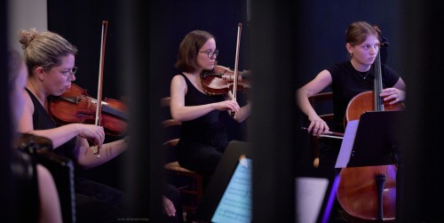 L’opera-melologo creata su testo di Angelo Floramo e musica originale di Carlo Galante, sarà presentata in Slovenia nella versione tradotta da David Bandelj e affidata alla voce recitante di due giovani attori ben noti al pubblico d’oltreconfine, Gaja Filač e Matej Zemljič, tra i più amati protagonisti di una serie televisiva di grande successo (Skrito v raju / Nascosto in Paradiso), ma anche in scena in diverse produzioni del Teatro Nazionale Sloveno SNG di Lubiana e Nova Gorica. Anche tra le file della GO!Borderless Orchestra, l’ensemble strumentale che assieme al mezzosoprano Cecilia Bernini completa il cast dello spettacolo, siedono tre musiciste slovene, ovvero la sezione degli archi formata da Mojca Batič violino, Barbara Grahor Vovk viola, Vida Furlan violoncello, accanto a Gabriele Bressan oboe/corno inglese, Davide Teodoro clarinetto/clarinetto basso, Ludovica Borsatti fisarmonica. Una collaborazione a tutto campo che è stata sviluppata grazie alla partnership progettuale con l’Associazione musicale slovena Glasbeno društvo Nova di Nova Gorica, che organizza anche il festival estivo nella suggestiva location intorno al Castello di Vipavski Križ.