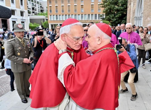 Ricordiamo che monsignor Riccardo Lamba – come informa una nota biografica dell’Arcidiocesi di Udine – è nato a Caracas, in Venezuela, il 30 novembre 1956, da una famiglia di emigrati originari di Castellammare di Stabia, in Campania. Con la sua famiglia rientrò in Italia nel 1965: l’azienda in cui lavorava il padre, infatti, propose un incarico in un nuovo stabilimento che avrebbe aperto a Roma. Nella capitale Riccardo Lamba proseguì gli studi, conseguendo nel 1982 la laurea in Medicina e Chirurgia all’Università Cattolica del Sacro Cuore; alla laurea seguì un anno di specializzazione. Ma oltre alla cura del corpo, il Signore stava chiamando quel giovane medico a una cura più profonda, quella dell’anima: così nel 1983 Riccardo Lamba entrò al Pontificio Seminario Romano Maggiore. Al termine degli studi fu ordinato presbitero per la Diocesi di Roma: era il 6 maggio 1989. Successivamente conseguì il Baccalaureato in Teologia e la Licenza in Psicologia alla Pontificia Università Gregoriana nel 1991.