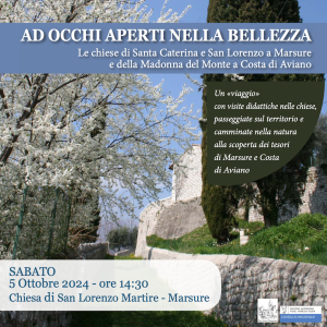 Il programma della giornata prevede il ritrovo alle 14.15 alla Chiesa di San Lorenzo Martire a Marsure. Da qui con i mezzi – o a piedi per chi lo vorrà lungo il Sentiero di Maria per circa 10 minuti – si raggiungerà la Chiesa della Madonna del Monte a Costa di Aviano dove alle 15 ci sarà un momento culturale con visita didattica a cura del dottor Roberto Castenetto, professore e storico. Alle 15.45 partenza per la Chiesa di Santa Caterina a Marsure dove alle 16 il momento culturale con visita didattica sarà a cura della dottoressa Lorena Menegoz, storica dell’arte.