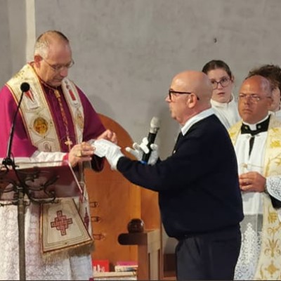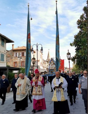 (g.l.) Conto alla rovescia, a Grado, per la grande festa dedicata ai trent’anni del Ricreatorio Spes che si terrà il 20 ottobre prossimo a Città Giardino con la partecipazione dell’arcivescovo di Gorizia, Carlo Redaelli. Una importante giornata che ha avuto una bellissima anticipazione domenica scorsa, in occasione della ricorrenza della Madonna del Rosario. Infatti, al termine della processione per le vie del centro storico e sulla diga Nazario Sauro (dove è avvenuta anche la tradizionale “benedizione del mare”) con l’antica statua della Madonna degli Angeli, al rientro nella Basilica di Sant’Eufemia l’associazione dei Portatori della Madonna di Barbana ha consegnato a monsignor Paolo Nutarelli un’offerta proprio per lo Spes oggetto, come è noto, di importanti lavori di ristrutturazione e che saranno al centro della festa imminente.