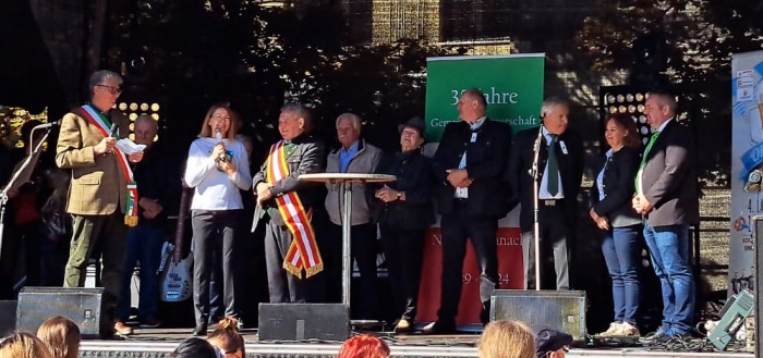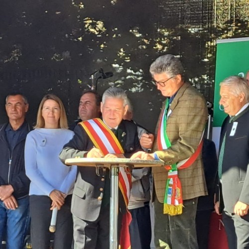 LANNACH – «Questi sentimenti di amicizia e questi ideali di pace e di unione fra i popoli ci accompagnino e ci guidino in questo periodo buio e difficile. Grazie per la bellissima accoglienza, viva Lannach, viva Nimis e viva il gemellaggio!». Con queste significative parole il commissario comunale Giuseppe Mareschi ha concluso il suo saluto agli amici stiriani durante la breve ma simpaticissima cerimonia organizzata nella cittadina alle porte di Graz, seconda città dell’Austria, per rinsaldare i valori e i vincoli del gemellaggio nel suo 35° anniversario, replicando quanto era avvenuto a Nimis, al Santuario delle Pianelle, l’8 settembre scorso, in occasione della sagra pluricentenaria. E, parimenti, la cerimonia a Lannach ha avuto quale gioiosa cornice proprio l’annuale festa d’autunno in una tersa e calda mattinata, “inondata” da un sole insolito a queste latitudini nel mese di ottobre.