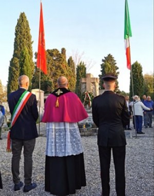 (g.l.) L’omaggio ai Caduti di tutte guerre coincide con la Giornata dell’Unità nazionale e delle Forze armate che ricorreva il 4 novembre. Ma a Grado un grato ricordo dedicato a quanti hanno perso la vita a causa dei conflitti che hanno insanguinato anche le nostre terre è avvenuto già in occasione della solennità di Tutti i Santi, quando in cimitero monsignor Paolo Nutarelli – presente anche don Gianni Medeot, cappellano militare dei Lagunari Serenissima – dopo la celebrazione della Parola ha benedetto le tombe dei concittadini che non ci sono più e in particolare di quelli che sono morti nell’ultimo anno, i cui nomi – molti, purtroppo – sono stati ricordati su “Insieme”, il foglio informativo settimanale della Parrocchia arcipretale di Sant’Eufemia. Nell’isola è arrivata, infatti, la Fiaccola Alpina della Fraternità, un evento molto atteso e sentito proprio perché dedicato a quanti, sono tantissimi, hanno sacrificato la vita per l’affermazione nella nostra Italia della libertà e della democrazia.
