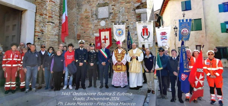 (g.l.) Doveva essere soltanto la festa della Basilica patriarcale di Grado, con le celebrazioni per ricordare il 1445° anniversario della sua dedicazione a Sant’Eufemia di Calcedonia. Ma oltre a uno sguardo, doveroso, al passato – è sempre bello e importante sapere da dove siamo arrivati! -, la giornata rievocativa si è rivelata anche un tributo al presente, con un segno di riconoscenza alle espressioni di volontariato che costantemente, e senza stancarsi mai, animano l’Isola.