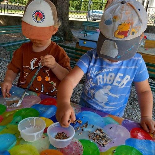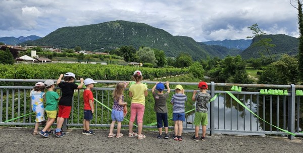 In copertina, bambini della materna intenti nei loro lavoretti e, qui sopra, durante una bella passeggiata in riva al Cornappo.