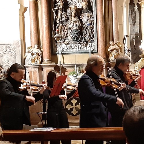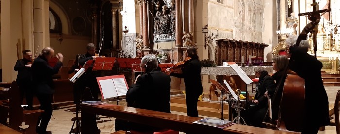 TARVISIO – Che belle atmosfere natalizie calate in musica in una cornice storica molto suggestiva, qual è quella della gotica Chiesa dei Santi Pietro e Paolo, e il paesaggio di Tarvisio imbiancato da una soffice neve. Riuscitissimo, e molto apprezzato, infatti, il concerto che l’Orchestra “Thomas Schippers” ha proposto nell’ambito del ricco programma messo a punto dal Comune montano per dare tono culturale, vivacità e allegria alle feste di fine anno che, nel capoluogo della Valcanale, sono sempre molto sentite e frequentate da chi sceglie questa invitante località prossima ai Tre Confini per le vacanze invernali: molto attesa, per esempio, è ora la tradizionale discesa dal Monte Lussari con fiaccole e sci ai piedi la sera di Capodanno. Una tradizione che si rinnova da oltre mezzo secolo e che è, via via, cresciuta diventando la fiaccolata più lunga delle Alpi con centinaia di partecipanti.