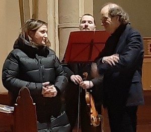 La scaletta della “Schippers” – archi e percussioni – si è quindi aperta con un magnifico brano di Johann Sebastian Bach che fa parte delle famosissime Variazioni Goldberg, seguito da un’altrettanto affascinante pagina che il finlandese Jean Sibelius scrisse proprio per le feste di Natale. E sviluppandosi poi in un avvincente itinerario che attinge alle tradizioni soprattutto della Mitteleuropa. Perfettamente intonato con il paesaggio “Eine Musikalische Schlittenfahrt”, il tintinnante viaggio in slitta composto da Leopold Mozart, il padre del ben più conosciuto Genio di Salisburgo, ma anche il tema musicale di “Adeste Fideles”, uno degli inni più amati della tradizione natalizia, soprattutto se cantato con il suo testo latino. E poi davvero coinvolgente, per la sua serenità e dolcezza, il “White Christmas” degli anni Quaranta nell’arrangiamento dello stesso maestro Grandi: un “Bianco Natale” che ci voleva nella cornice innevata che avvolgeva la parrocchiale tarvisiana. Insomma, un insieme di brani opportunamente scelto – fra cui anche la bella Suite di Jean-Philippe Rameau e il simpaticissimo “Syncopated Clock” dello statunitense Leroy Anderson -, premiato da calorosi applausi tanto che l’Orchestra ha voluto ringraziare la platea congedandosi con un bis di sicuro effetto, come le trascinanti “Danze Ungheresi” di Johannes Brahms. Un programma lodato, infine, anche dal vicesindaco e assessore comunale ai Grandi eventi, Serena De Simone, tanto da farle auspicare che ci possano essere altre possibilità di ospitare nella Valle l’Orchestra di Carlo Grandi.