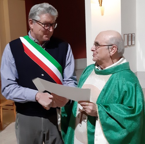 «Avevo avvertito strani movimenti stamattina – ha detto don Rizieri, visibilmente commosso -, ma non mi sarei aspettato questa festa bellissima. Grazie di cuore a tutti voi e in particolare al Comune e al suo commissario. Ho compiuto 80 anni e oltre 46 ne ho passati qui con voi, per cui vorrò rimanere qui anche quando il Signore mi chiamerà. E sulla mia lapide – ha aggiunto – desidero che, sotto nome e cognome, venga scritto “Fêi di Diu, come te”».