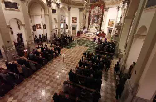 All’altare con il nuovo titolare della Chiesa udinese, l’attuale arciprete Luca Calligaro che guida la Pieve tarcentina dalla fine di ottobre assieme a numerosi sacerdoti friulani che hanno voluto unirsi nel ricordo di don Duilio. Del quale la sera precedente, in un Teatro Margherita gremito, era stato presentato un libro inedito di poesie – perché il defunto pievano non era soltanto giornalista e scrittore, ma anche fine poeta – dal titolo “Un resto di vita”. Con lo stesso monsignor Calligaro, c’erano sul palco il sindaco Mauro Steccati – che ha portato un grato saluto alla memoria di don Corgnali da parte della comunità tarcentina – e don Daniele Antonello, attuale direttore della Vita Cattolica. Della figura del sacerdote scomparso e in particolare della sua opera letteraria, oltreché pastorale, ha parlato don Alessio Geretti, figura molto nota in Friuli, e non solo, per aver ideato e da sempre diretto le meravigliose mostre di Illegio. E nel giugno scorso l’esperto di storia dell’arte aveva proposto a Nimis un bellissimo e approfondito ricordo di Tita Gori, il pittore del quale si conserva una bellissima opera anche nel Duomo di Tarcento.