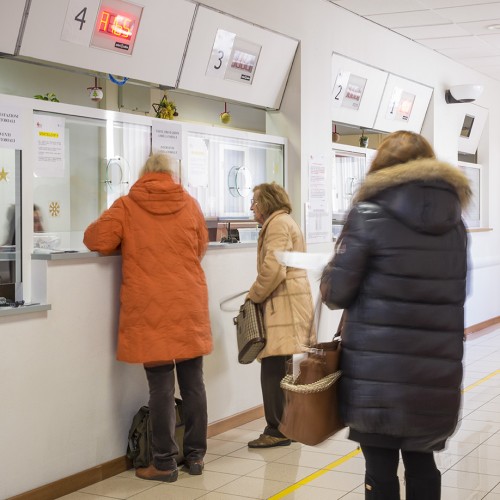 In copertina e all’interno un’accettazione e un impianto radiologico in una struttura sanitaria privata del Friuli Venezia Giulia.