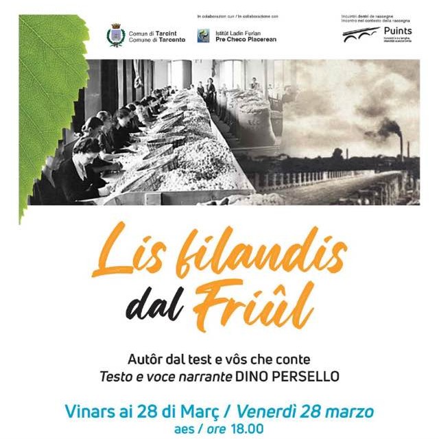 LA RAPPRESENTAZIONE – Domani, invece, alle 18 nella sede della Biblioteca civica “Pierluigi Cappello”, in via Julia 13, saranno di scena “Lis filandis dal Friul”, protagonista l’attore sandanielese Dino Persello che è pure autore dei testi e voce narrante. L’incontro è stato organizzato dal Comune di Tarcento con la collaborazione dell’Istitut Ladin Furlan “Pre Checo Placerean” e offrirà l’occasione per ripercorrere anche una importante pagina di storia industriale tarcentina che verrà rievocata proprio da Persello, molto conosciuto e apprezzato per essere un grande conoscitore del passato del nostro Friuli. L’attore e regista non perde, infatti, occasione per aprire importanti squarci sul nostro passato, toccando le corde del cuore fra quanti, sempre numerosi, lo ascoltano.