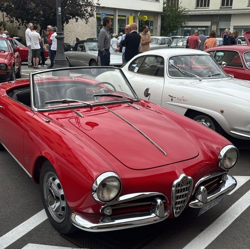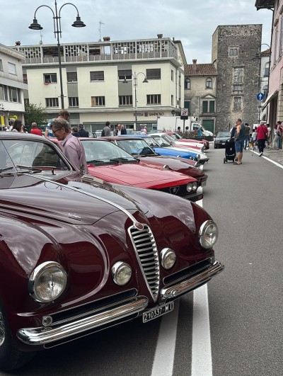 Il Cfve aveva dato appuntamento ai proprietari di eccezionali modelli di Alfa in Largo Boiani, nel cuore di Cividale. Si sono potute, così, ammirare una trentina di vetture d’epoca magnificamente conservate, prevalentemente degli anni 50 e 60, che sono rimaste esposte in mostra statica per un’intera mattinata. Mentre i partecipanti al raduno erano in visita ai musei cividalesi e al restaurato sito Unesco del tempietto longobardo, turisti e passanti si sono aggirati tra prestigiose vetture quali la A. R. Villa d’Este, la A. R. 1900 Touring, la Giulietta Sprint, la GTA, e varie spider come mitico duetto A. R. Osso di seppia.