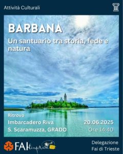 Posti limitati. Prenotazione obbligatoria a questo link: https://faiprenotazioni.fondoambiente.it/evento/barbana-un-santuario-tra-storia-fede-e-natura-34150/ Contributo richiesto di 15€ per gli iscritti FAI e 20€ per i non iscritti, comprensivo del traghetto a/r. Ritrovo ore 14.40 presso l’imbarcadero in Riva Sebastiano Scaramuzza – Partenza con il vaporetto alle ore 15.00, rientro con partenza da Barbana ore 17.30
