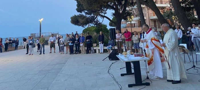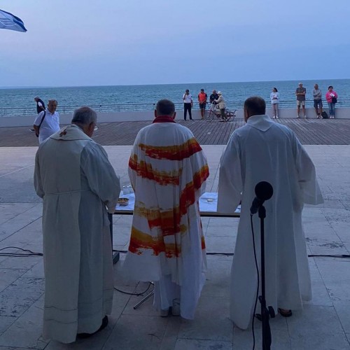 Solstizio d’Estate, Messa e concerto nella bora dell’alba sul Lungomare di Grado. L’arcivescovo ai turisti e agli operatori: “Costruite legami di umanità e dialogo”