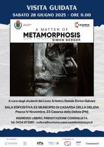 “A Matter of Metamorphosis” è realizzata dal Comune di Casarsa della Delizia con il supporto della Regione autonoma Friuli Venezia Giulia, in collaborazione con Cris Contini Contemporary, Centro Studi Pier Paolo Pasolini Casarsa, Pro Casarsa della Delizia APS, Contemporary&Co ed il Liceo Artistico Statale Enrico Galvani. Rimarrà aperta fino al 27 luglio ogni sabato e domenica dalle 10.30 alle 12.30 e dalle 15 alle 19.